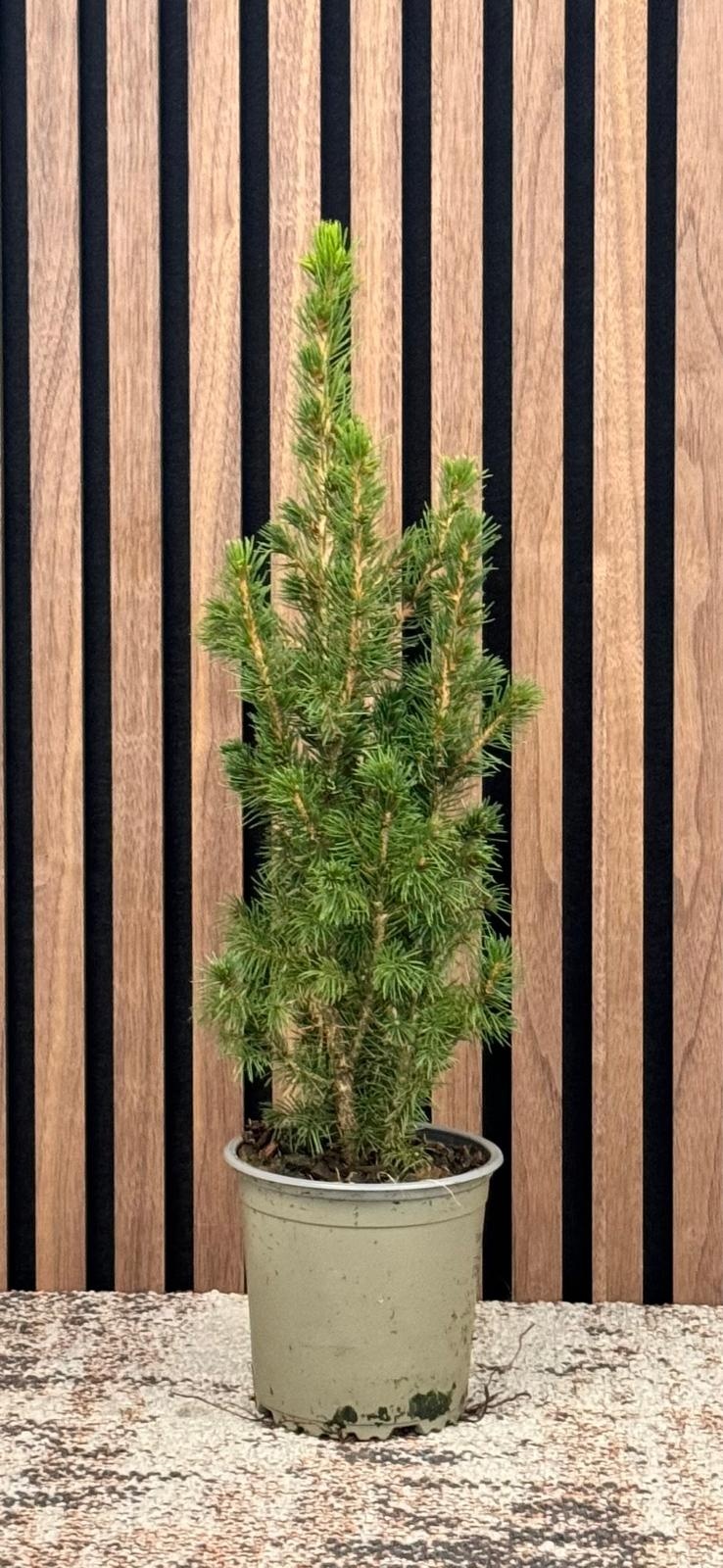 De Picea glauca 'Conica' is een mooie kleine Spar die zowel binnen als buiten te gebruiken is.